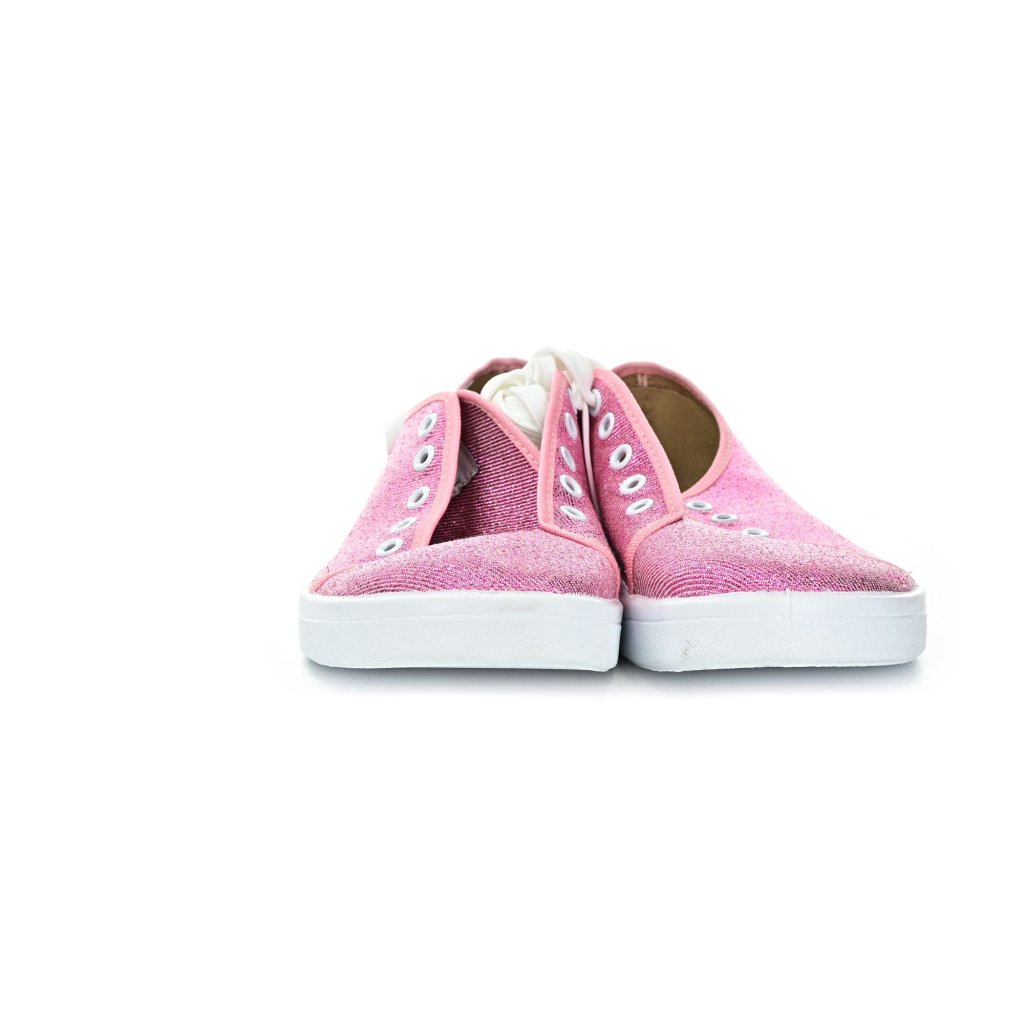 porušená růžová vrstva na malíkových stranách, obě boty