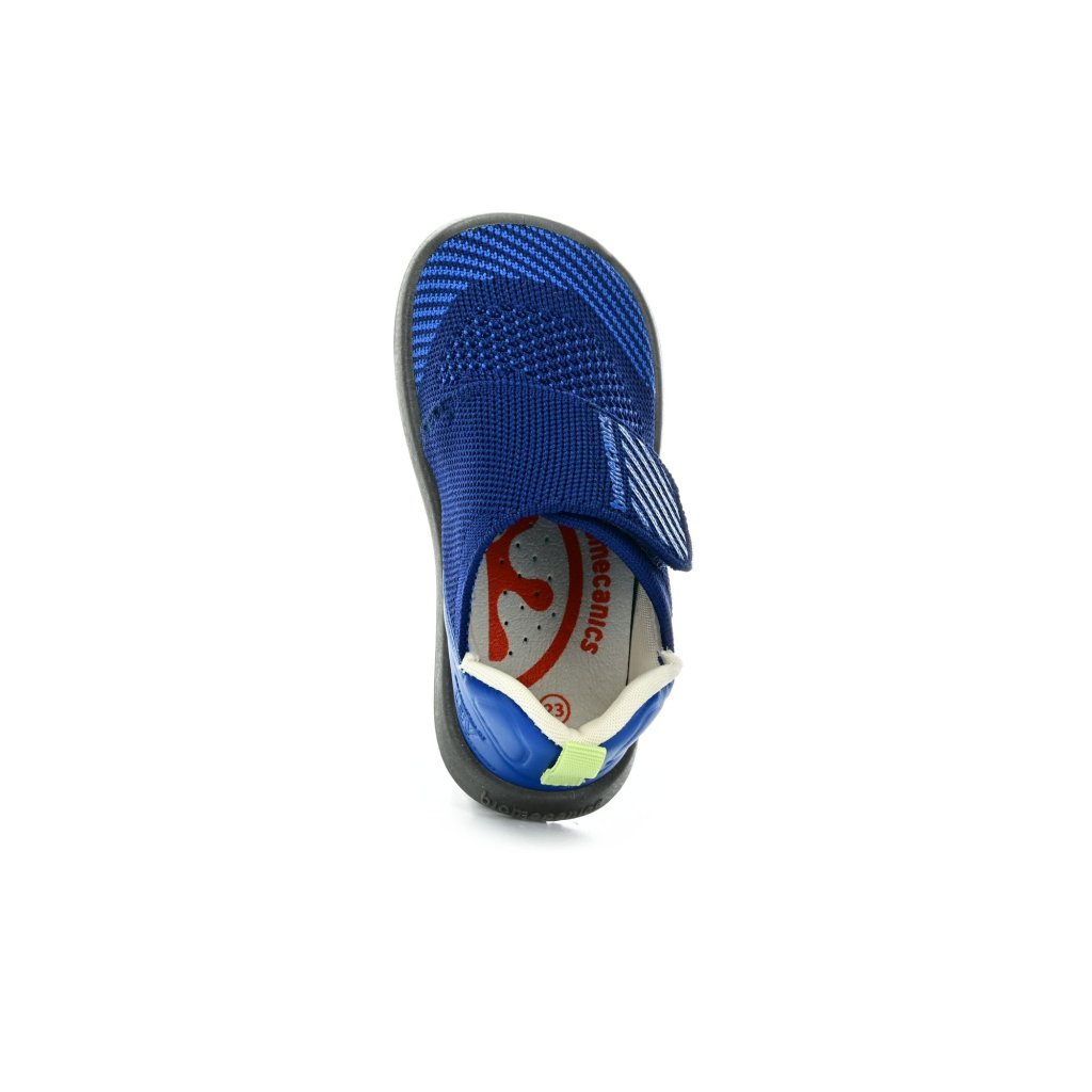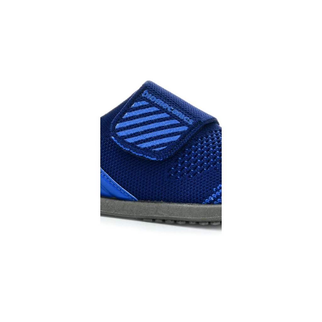Dětské barefoot tenisky Biomecanics jsou lehké a prodyšné pro teplé dny plné pohybu venku i ve školce. Pružný textil se přizpůsobí i vyššímu nártu, široký pásek na suchý zip usnadňuje obouvání a sportovní modrý design působí čistě a hravě.